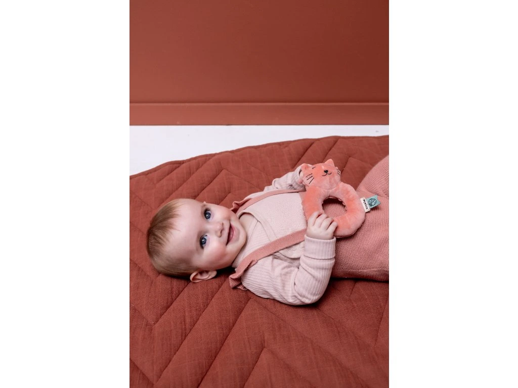 Složení: organická bavlna, recyklovaný polyester, chrastítko