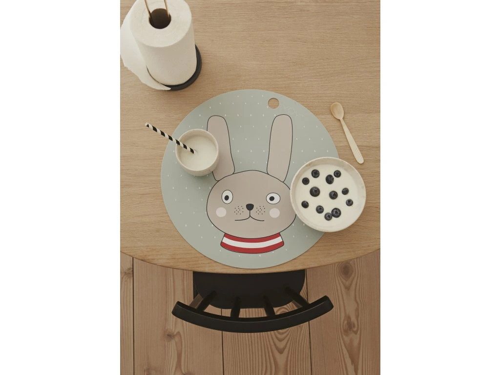 Kvalitní, zdravotně nezávadné prostírání pro každodenní používání. Veselý obrázek zajíčka bude děti bavit a jídlo bude mizet z talíře samo. Prostírání můžete také využít v dětském pokoji jako ochrannou podložku na stůl pro hru s modelínou nebo barvami.