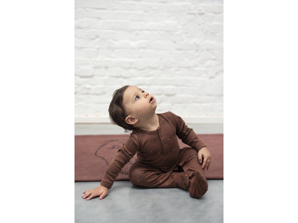 V tomto krásném pyžámku s motivem lanýžových prasátek bude vaše miminko opravdu moc roztomilé. Má dlouhý rukáv a kryté nohy. Zapínání na cvočky u krku a u nohou.