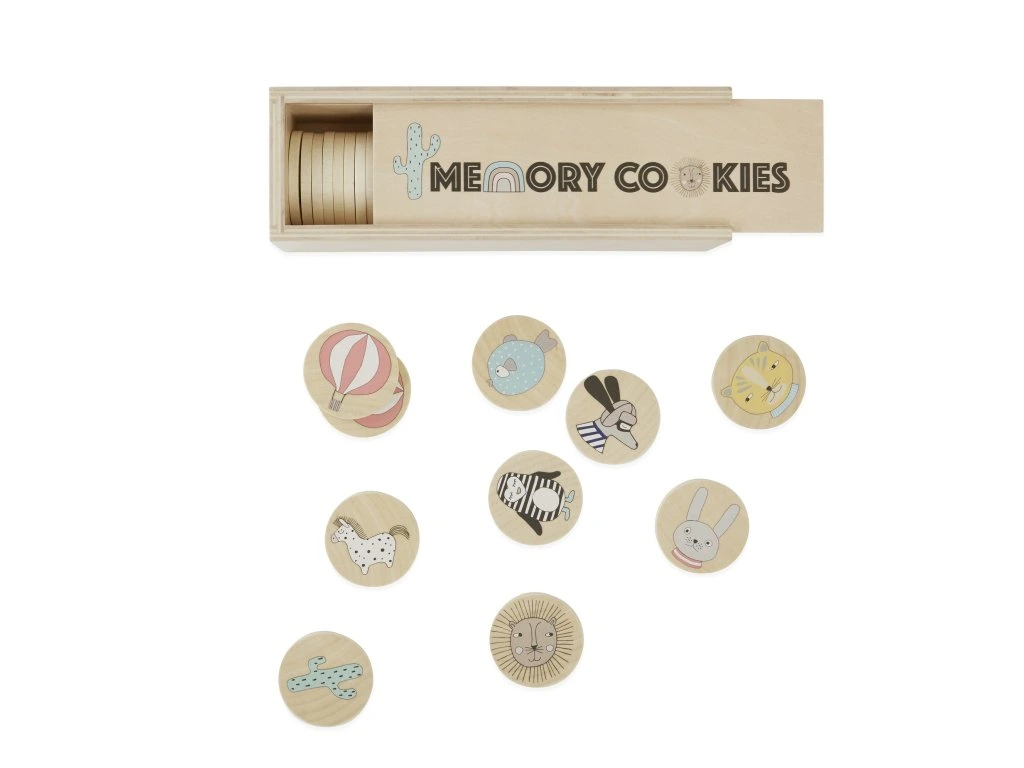 Tučňák Bob, lvíček Lion nebo koník Pelle vám budou dělat společnost při hraní krásného, dřevěného pexesa od dánské značky OYOY. Najděte dva stejné páry a dávejte si stranou! Ten, který má největší hromadu cookies, vyhrává! Dřevěná kolečka se malým dětem dobře otáčí a drží. Zábava pro celou rodinu.