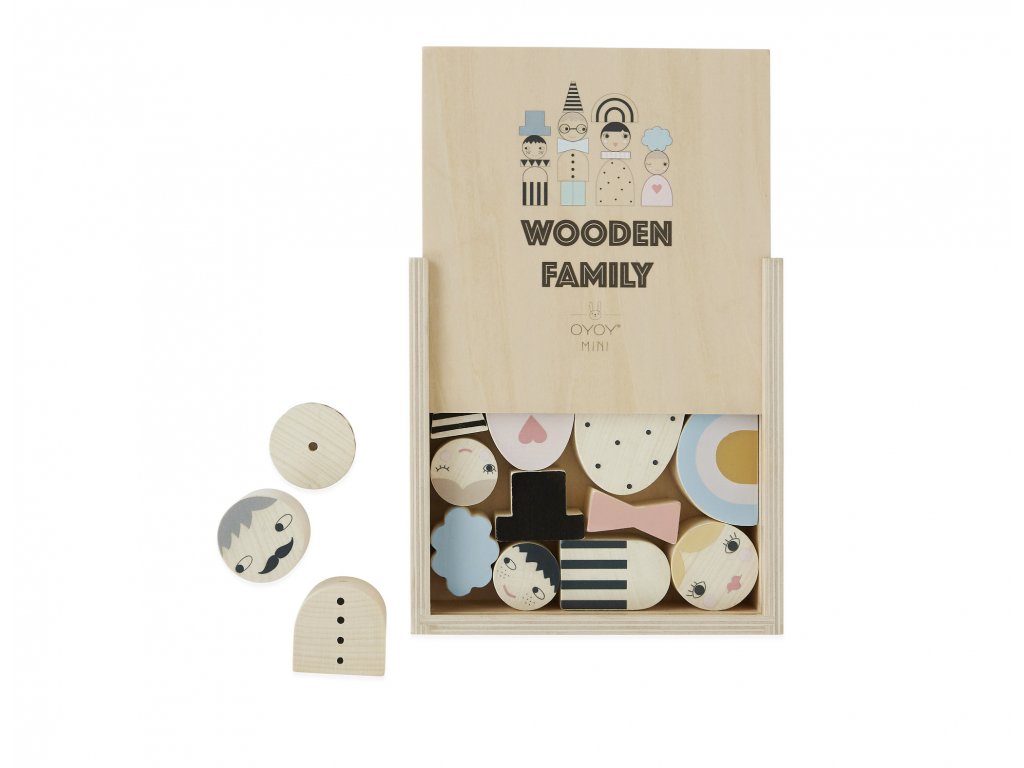 Dřevěné rodinné kostičky od firmy OYOY - navlékněte si rodinku na koženou šňůrku! Skvělé na zdokonalení jemných motorických dovedností, a poslouží i jako krásná dekorace v pokojíku.