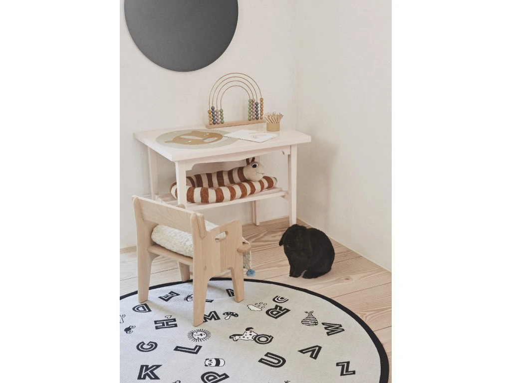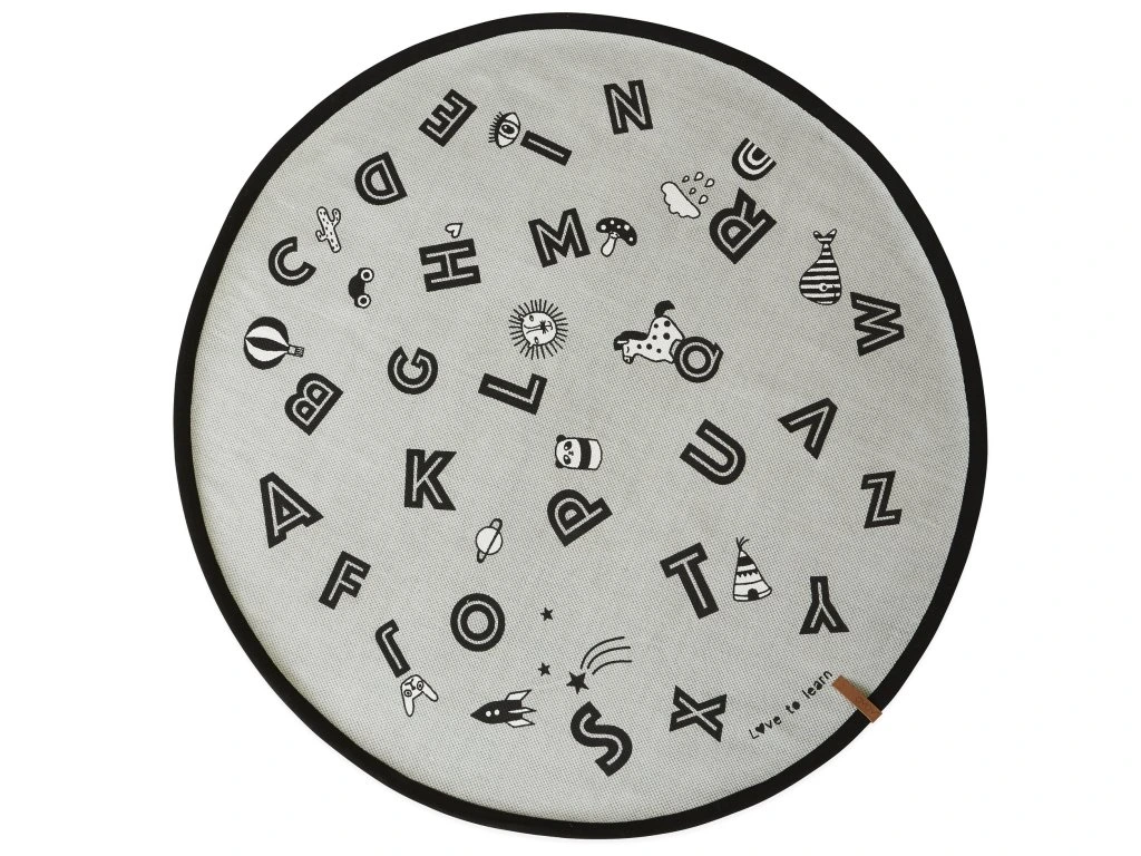 Kulatý koberec s abecedou oživý každý dětský pokojík. Dětem nebude při hraní na zemi chladno a ještě se při tom naučí písmenka. Designový kousek s koženým prvkem na lemu od OYOY. Love to learn!