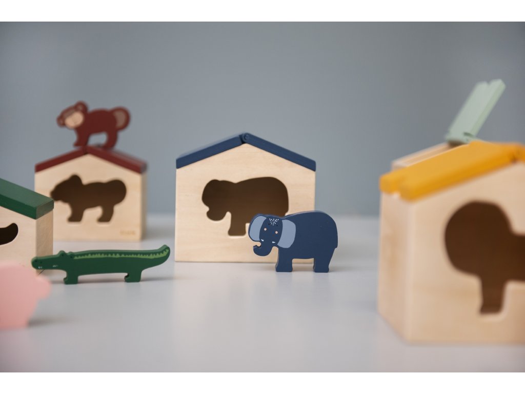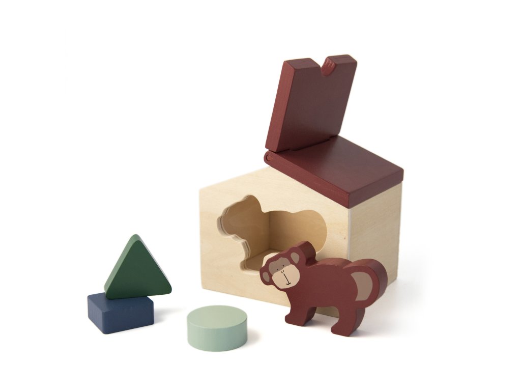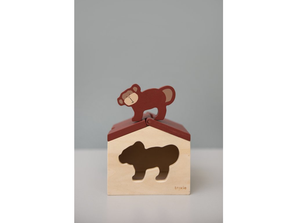 Pozdravte krásnou opičku a její malý domeček! Domeček má otevírací střechu a kromě zvířátka obsahuje i 3 geometrické kostky. S tímto roztomilým domečkem si vaše děti vydrží hrát dlouhé hodiny. Perfektní způsob, jak popustit uzdu dětské fantazii.