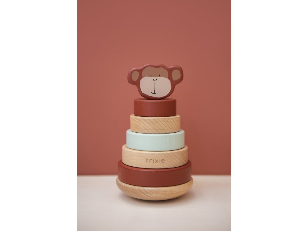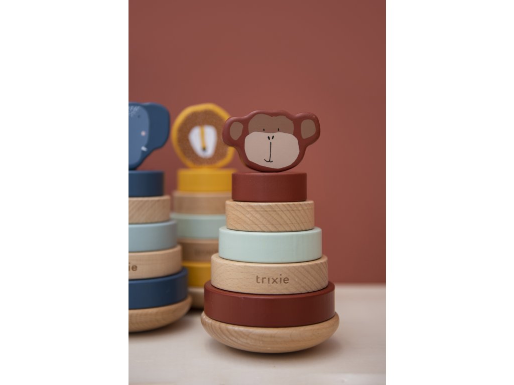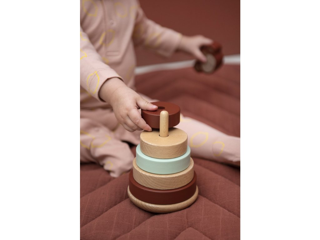 Nádherná dřevěná stohovací hračka, která bude zároveň ozdobou každého pokojíčku. Dřevěná základna je houpací, a dělá tak dětem skládání ještě o něco náročnější.