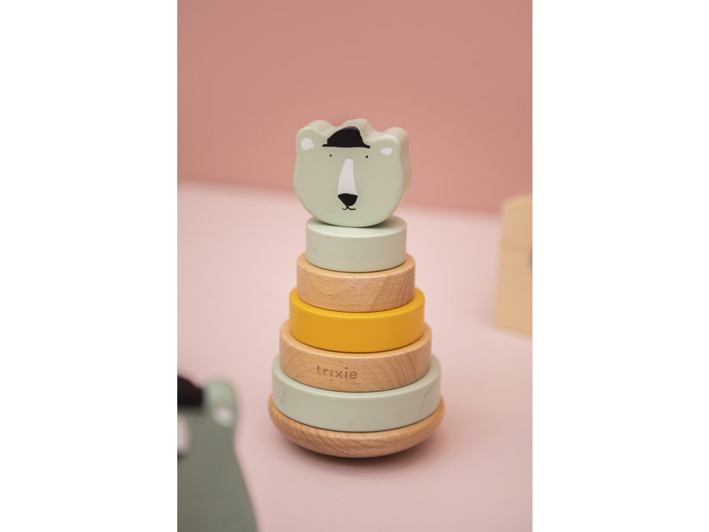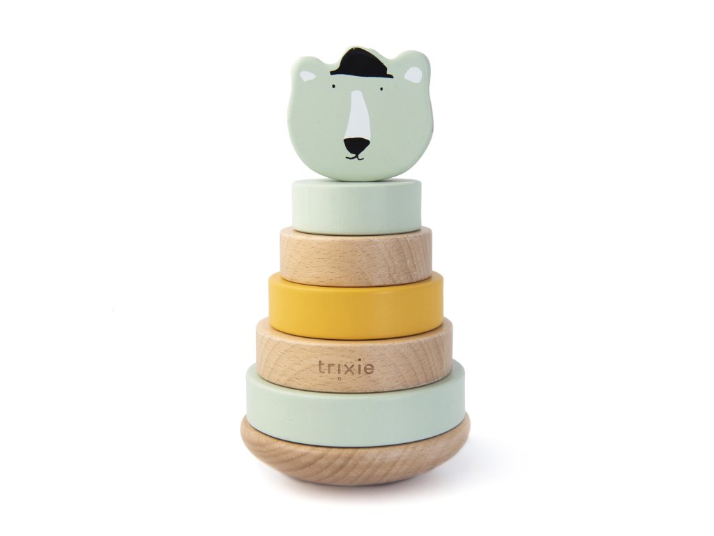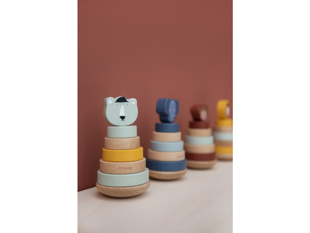 Nádherná dřevěná stohovací hračka, která bude zároveň ozdobou každého pokojíčku. Dřevěná základna je houpací, a dělá tak dětem skládání ještě o něco náročnější.