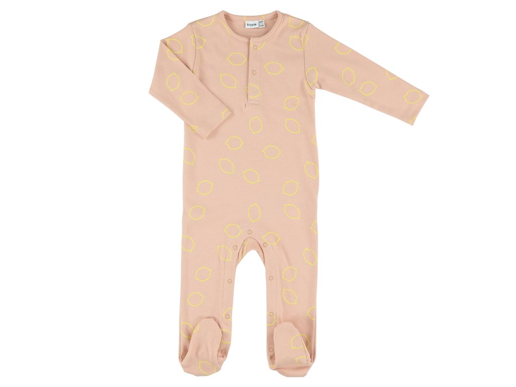 V tomto krásném pyžamku s motivem citrónů bude vaše miminko opravdu moc roztomilé. Má dlouhý rukáv a kryté nohy. Zapínání na cvočky u krku a u nohou.