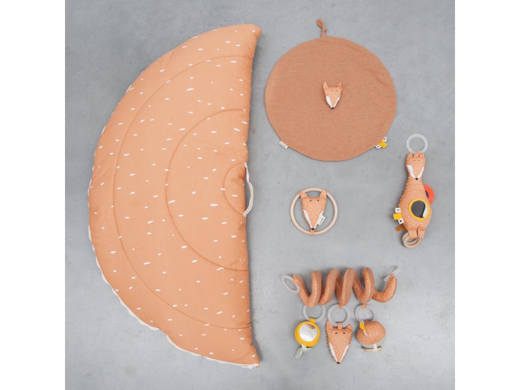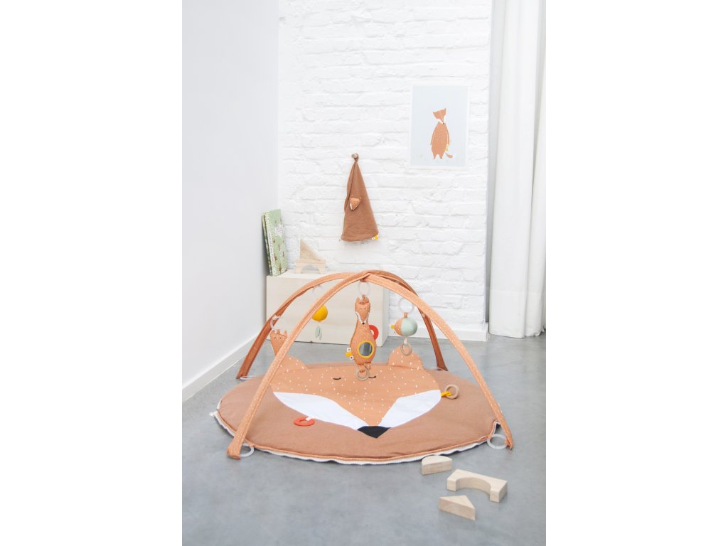 Tato hrací podložka s hrazdičkou a třemi zavěšenými hračkami zaručuje hodiny hraní! Zrcátko, dřevěné kroužky, chrastítko, šustivý papír, zábavné třásně a chlupatá ouška podporují všechny smysly dítěte. Lze zapnout na zip, tím zabráníte umazání a snadno přemístíte nebo zabalíte na cesty.