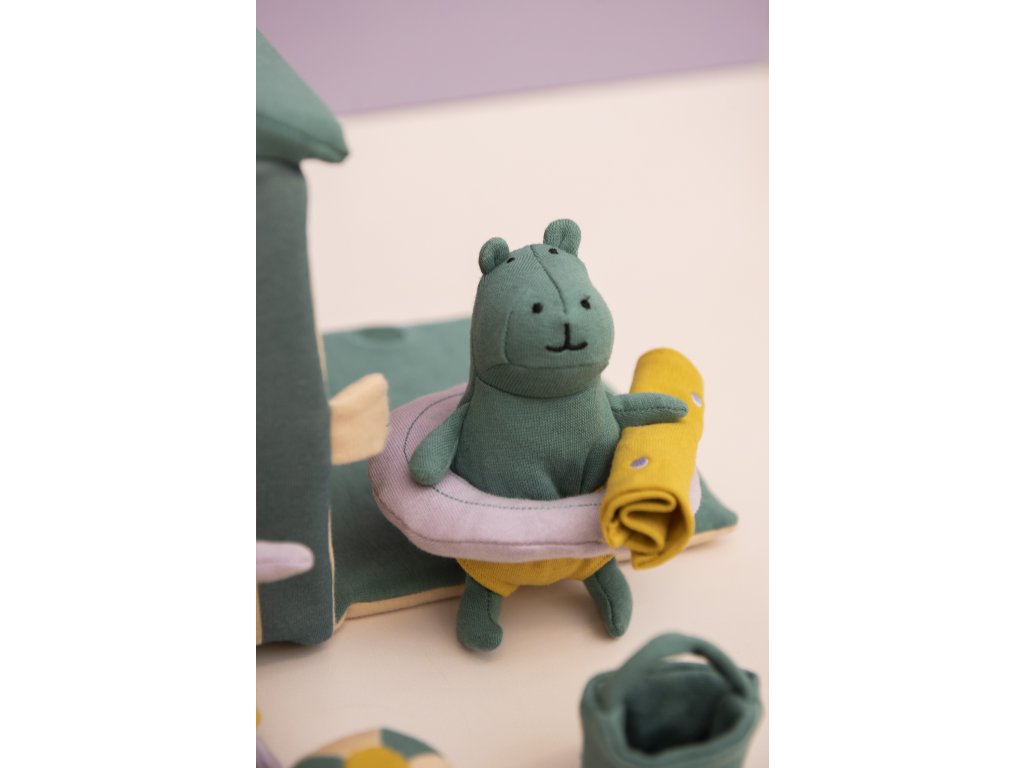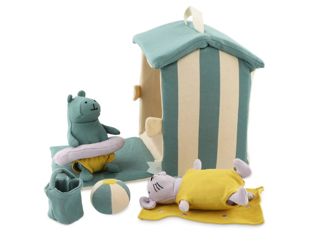 Balení obsahuje: zapínací plážový domeček, 2 postavičky ve sladěných plavkách, a 4 roztomilé doplňky. Postavičkám lze sundat a nandat oblečení.
