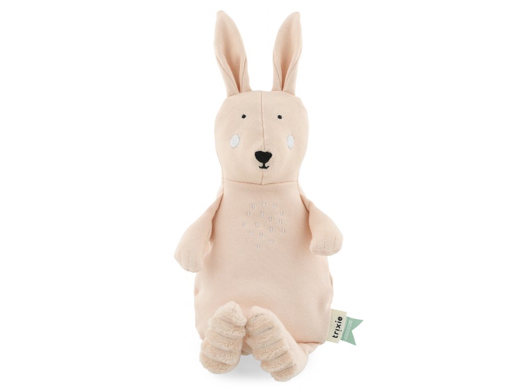 Tato unikátní plyšová hračka z nové kolekce Trixie Baby World of Play je vyrobena ze 100% čisté organické bavlny, takže neobsahuje absolutně žádné škodlivé látky, které nechcete, aby se k Vašemu děťátku dostaly. Navíc je uvnitř plněná 100% recyklovaným polyesterem, takže její výroba je šetrná k naší planetě. Hračka je krásně měkoučká a můžete si hrát s rukama, nohama i ocáskem, a posazovat ji do různých pozic. V zadní části zvířátka jsou malé kuličky, díky kterým hezky drží a navíc trochu šustí, a tím se stává ještě zajímavější. Větší velikost skvěle poslouží i jako polštářek.