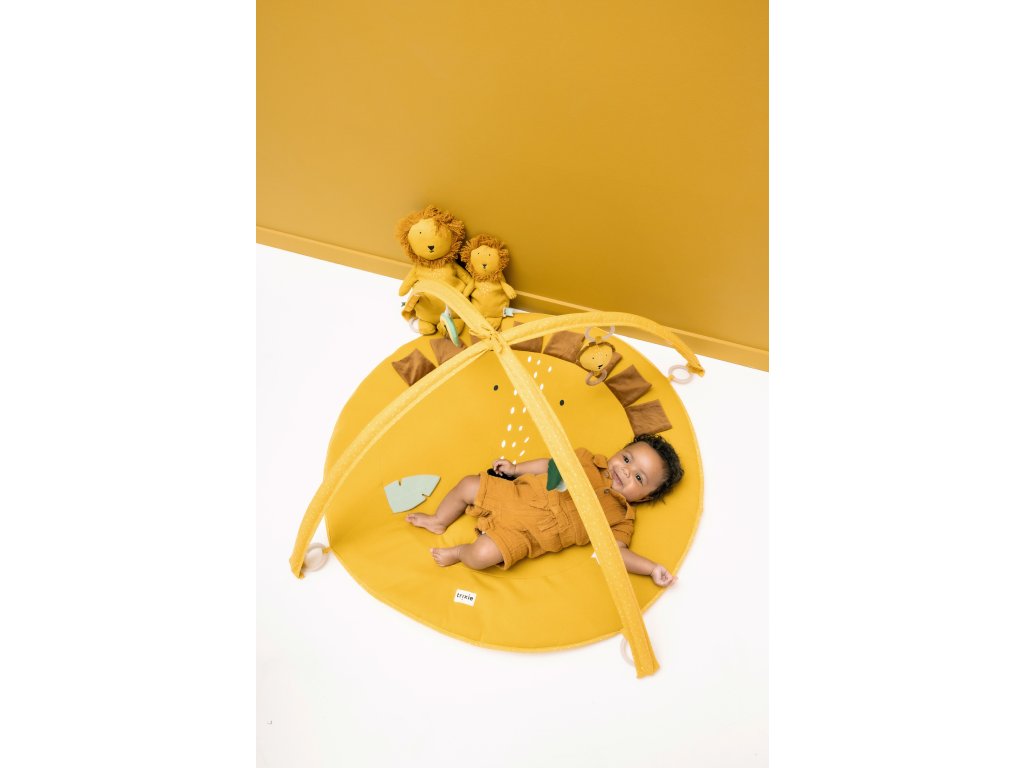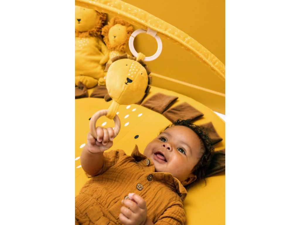 Obsahuje kousátko, zrcátko, dřevěné kroužky, chrastítko, šusticí papír, třásně i pohyblivá ouška z různých textur – vše navrženo tak, aby stimulovalo všechny dětské smysly a podporovalo přirozený rozvoj. Ideální místo pro první objevování světa!