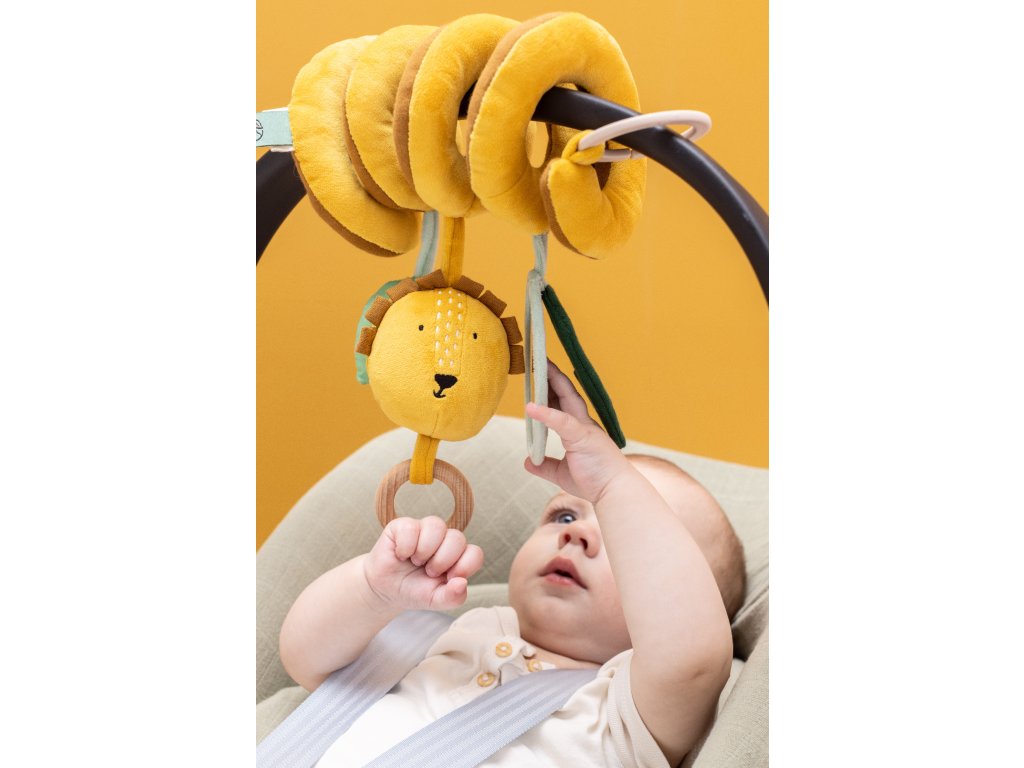 Snadno se omotá kolem autosedačky, kočárku nebo ohrádky a nabízí spoustu prvků k objevování – dřevěný kroužek, šusticí papír, zrcátko, chrastítko a další. Každá z tří hraček má jiné funkce, které dítě zabaví doma i na cestách. Díky praktickým kroužkům lze jednotlivé hračky snadno odepnout a používat i samostatně.