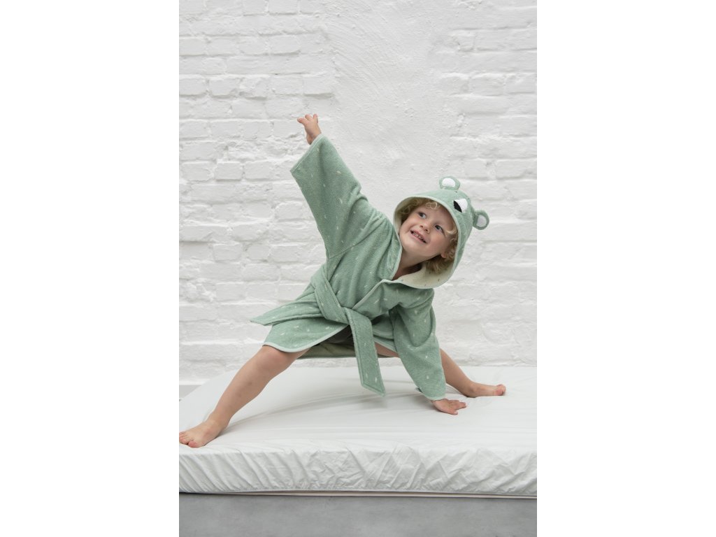 Dětský župan s kapucou z organické bavlny je měkoučký a dobře saje. Ideální pro holky i kluky. Využijete po každém koupání, jak ve vaně, tak třeba v bazénu. Zapínání na patentky.