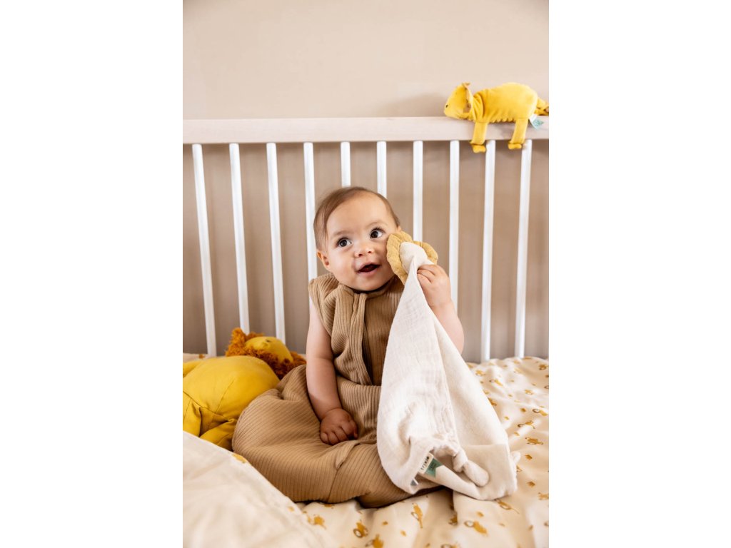 Tento mazlíček z měkkého mušelínu s přátelským obličejem si získá srdce každého drobečka. Díky jemné látce z organické bavlny a pečlivému zpracování bude věrně doprovázet vaše dítě kamkoli se vydá.