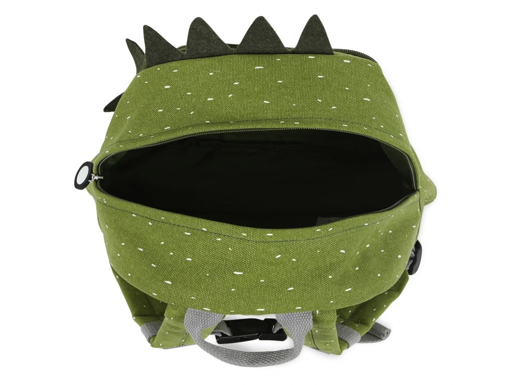 S týmto zábavným batohom dinosaura bude vaše dieťa chodiť do škôlky s radosťou. Vo vnútri má 1 veľké priehradku s menovkou, zvonku je praktické predné vrecko na zips. Nastaviteľné ramenné popruhy sa dajú pohodlne zapnúť zacvaknutím na prednej strane, takže batoh nesklzáva z ramien dole. Batoh je priestranný a hlavne pevný.