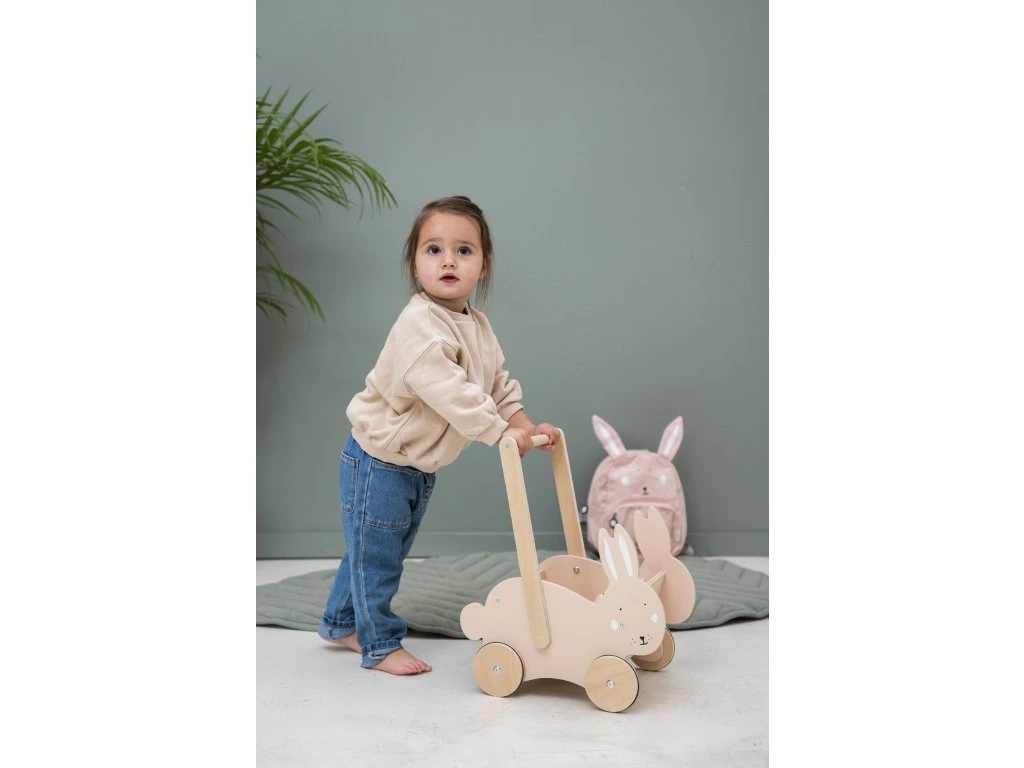 Krásny drevený vozík potrebuje každé dievčatko! Naloží a vyloží všetky nevyhnutnosti a vyrazí na cestu. Kolieska sú potiahnuté gumou, takže sa vozík dobre tlačí a kolieska nerobia na podlahe hluk.