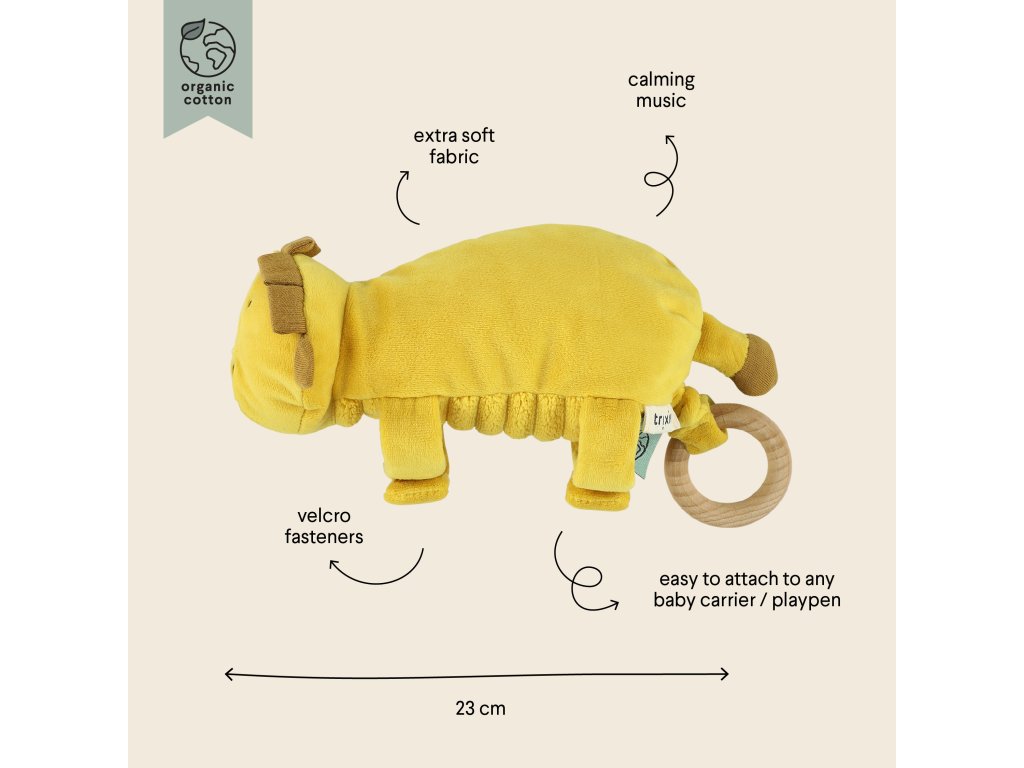Tento mazlivý hudební kamarád je připraven doprovázet vaše miminko uklidňující melodií, ať už jste kdekoli.