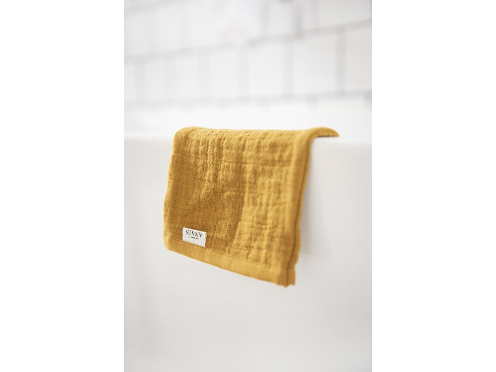 Mušelínová žínka Bliss Mustard 2 ks
