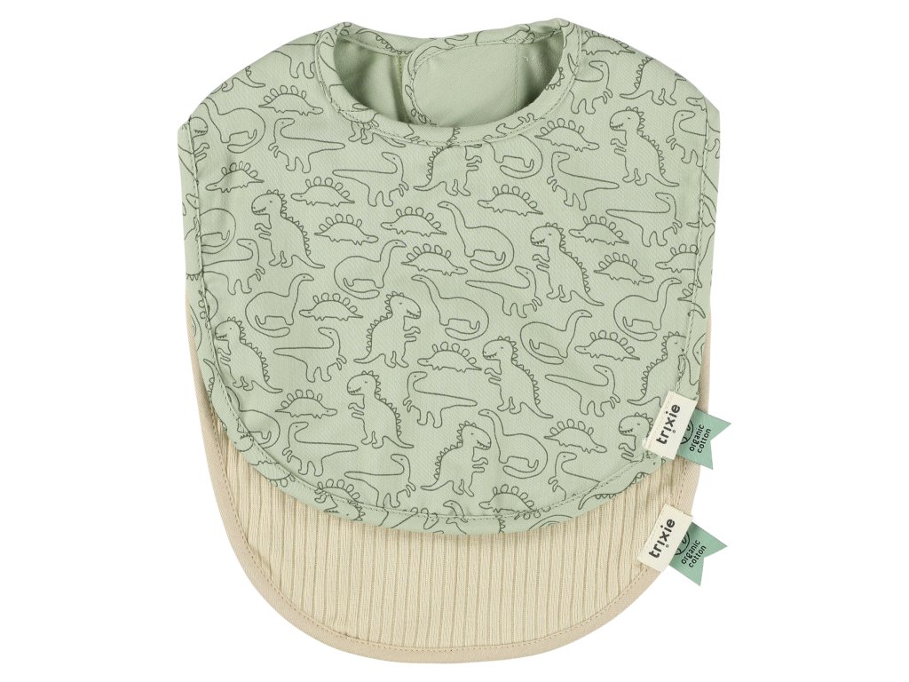 Tato sada obsahuje dva bryndáčky s veselým motivem dinosaura, které jsou vyrobeny ze 100% organické bavlny. Díky tomu jsou mimořádně jemné a šetrné k citlivé pokožce novorozenců.