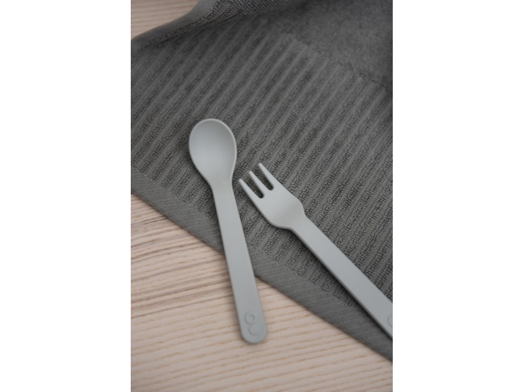 Vidlička i lžička jsou navrženy přesně tak, aby padly do malých dětských ručiček, které se učí jíst samy.
