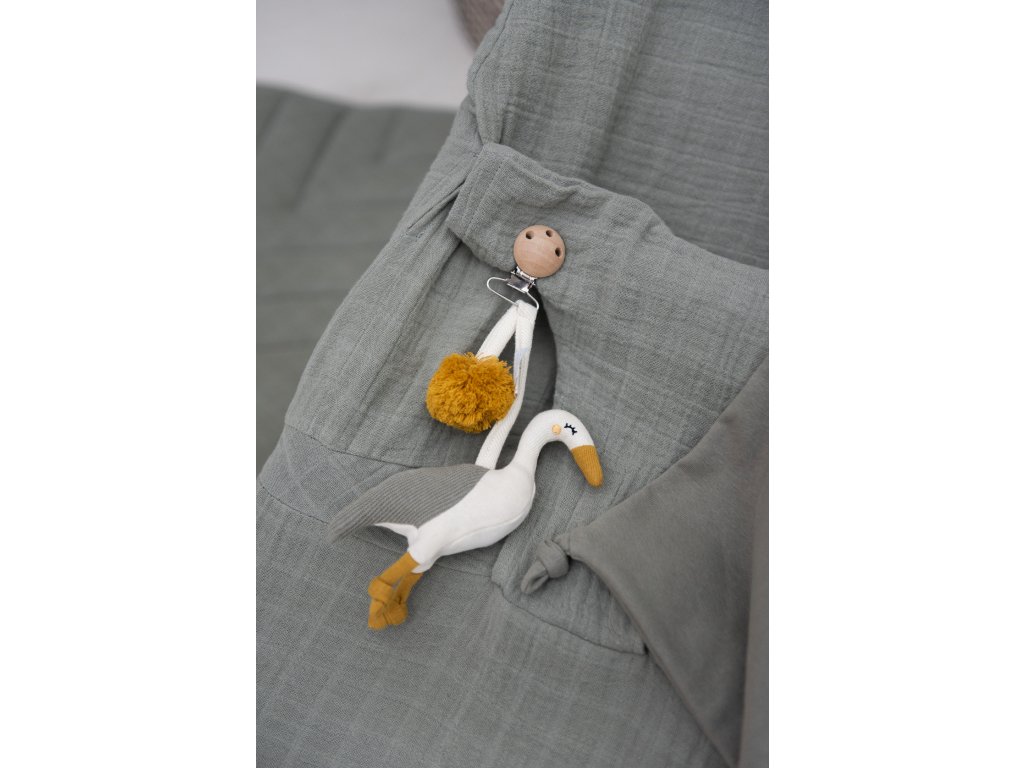 Materiál: 100% organická bavlna, výplň 100% recyklovaný polyester, dřevěný klip