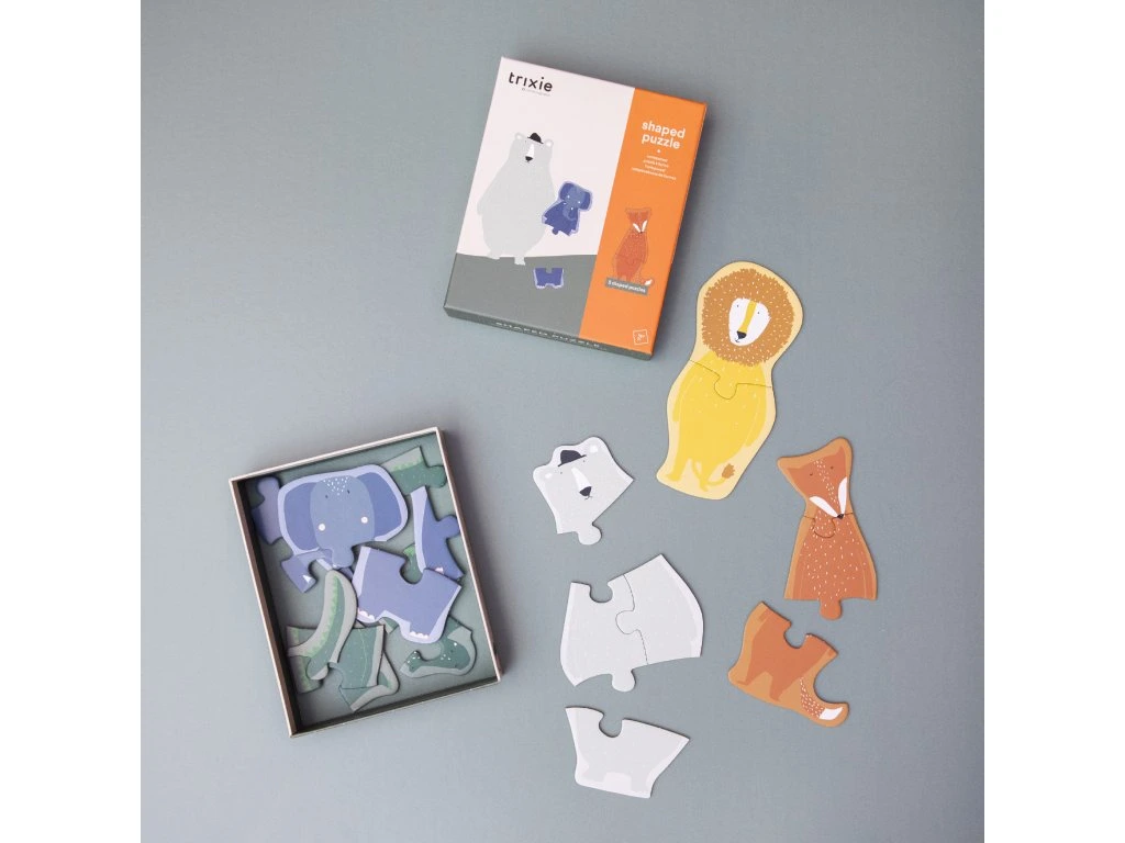 Päť zvieracích priateľov na skladanie! Poskladajte všetky správne kúsky a dokončite 5 rôznych tvarov jednotlivých zvieratiek. Každá skladačka má inú úroveň obtiažnosti, od dvojdielnej až po šesťdielnu. Ideálna sada pre všetkých najmenších, ktorí sú vo svete puzzle nováčikmi!
