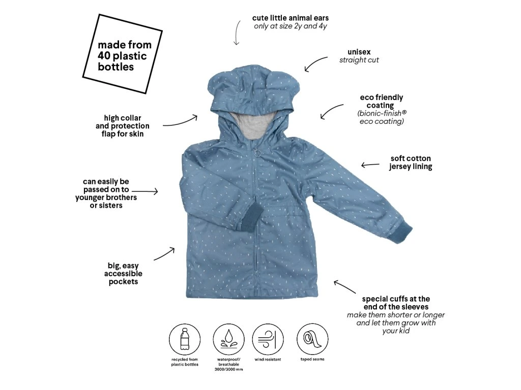 Krásna a funkčná bunda do dažďa pre dievčatá i chlapcov, s malými uškami Mrs. Elephant!
