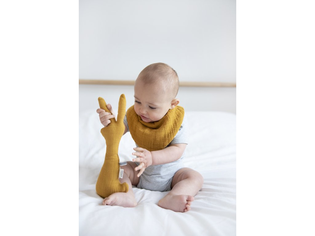Krásné chrastítko a pískátko ve tvaru králíčka, které si všechna miminka zamilují především proto, že se jim bude dobře držet za dlouhý krk. Ideální kamarád do kočárku nebo do postýlky.
