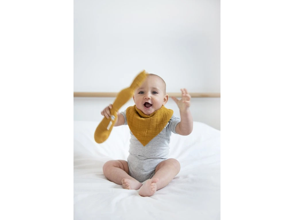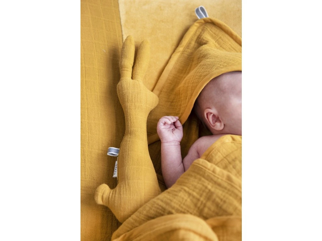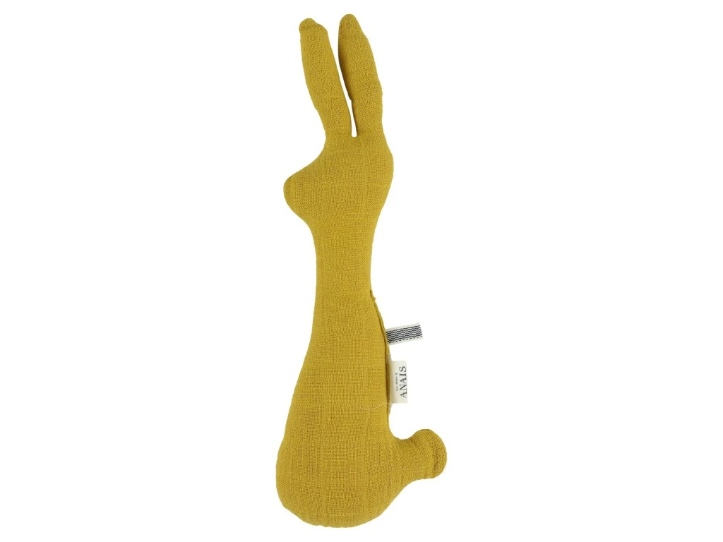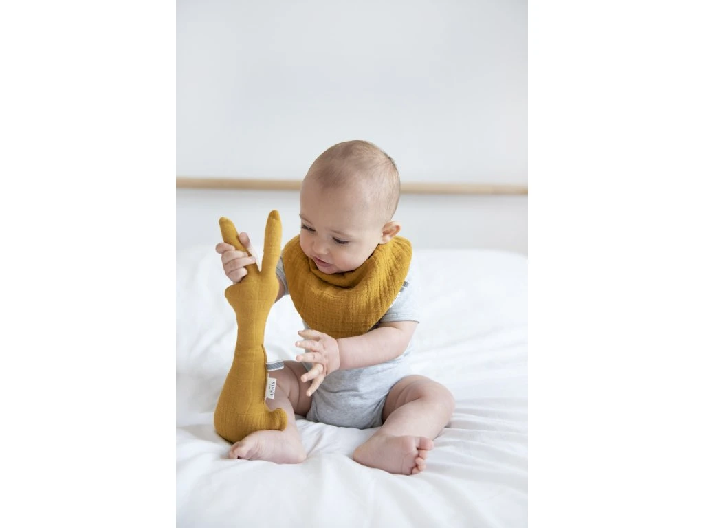 Krásne hrkálka a pískátko v tvare zajačika, ktoré si všetky bábätká zamilujú predovšetkým preto, že sa im bude dobre držať za dlhý krk. Ideálny kamarát do kočíka alebo do postieľky.