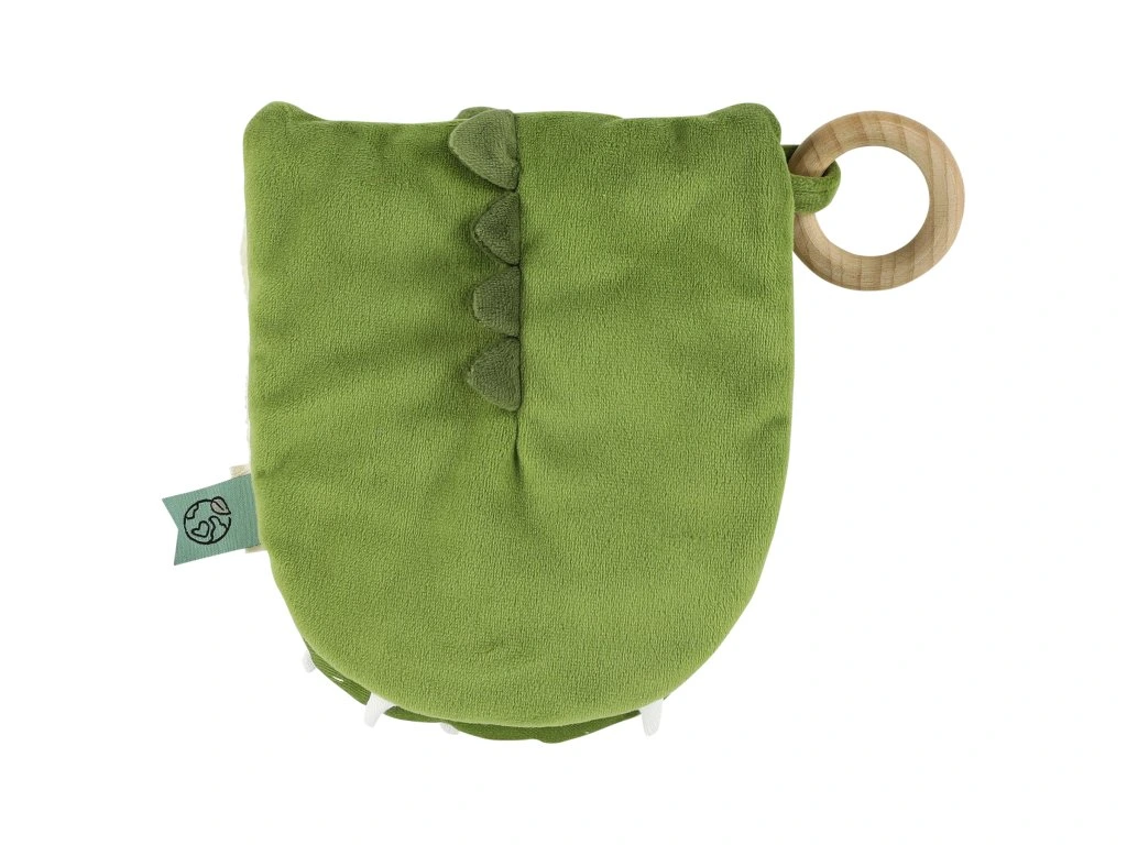 Zloženie: organická bavlna, bavlna, recyklovaný polyester, hryzátko, zrkadielko, drevený krúžok, šuštiaci papier