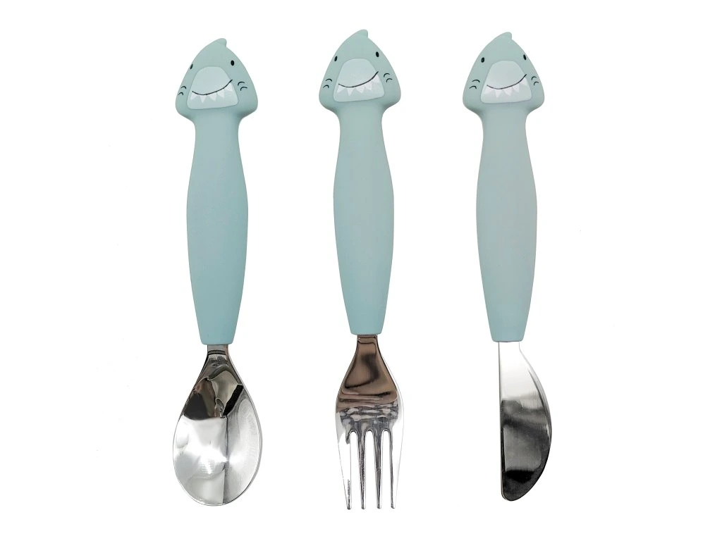 Detský silikónový príbor Trixie Baby 3-pack - Mr. Shark