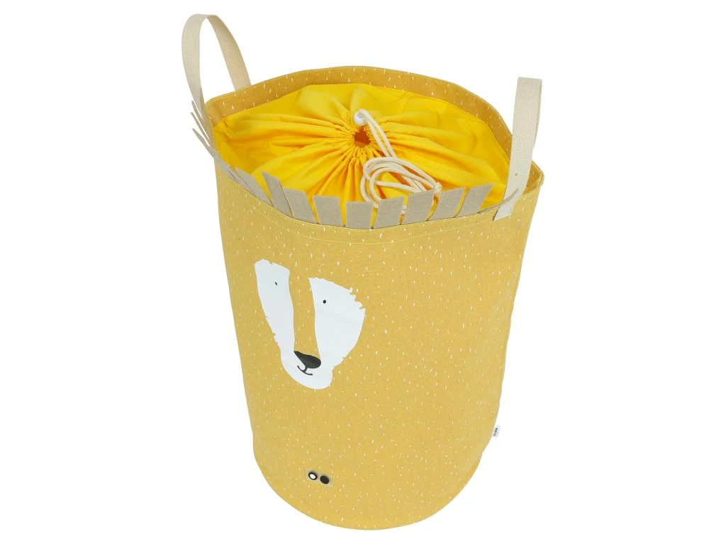 Úložný kôš na hračky s motívom leva. Kôš je veľmi stabilný, stojí sám o sebe a okrem hračiek možno použiť aj ako kôš na bielizeň. Hore sa dá uzavrieť sťahovacou šnúrkou, takže nie je vidieť dovnútra a všetko je pekne upratané. Kôš má dve robustné uška, a deti tak môžu ľahko kôš premiestniť aj keď je plný. Do takéhoto košu pôjde upratovanie jedna radosť.
