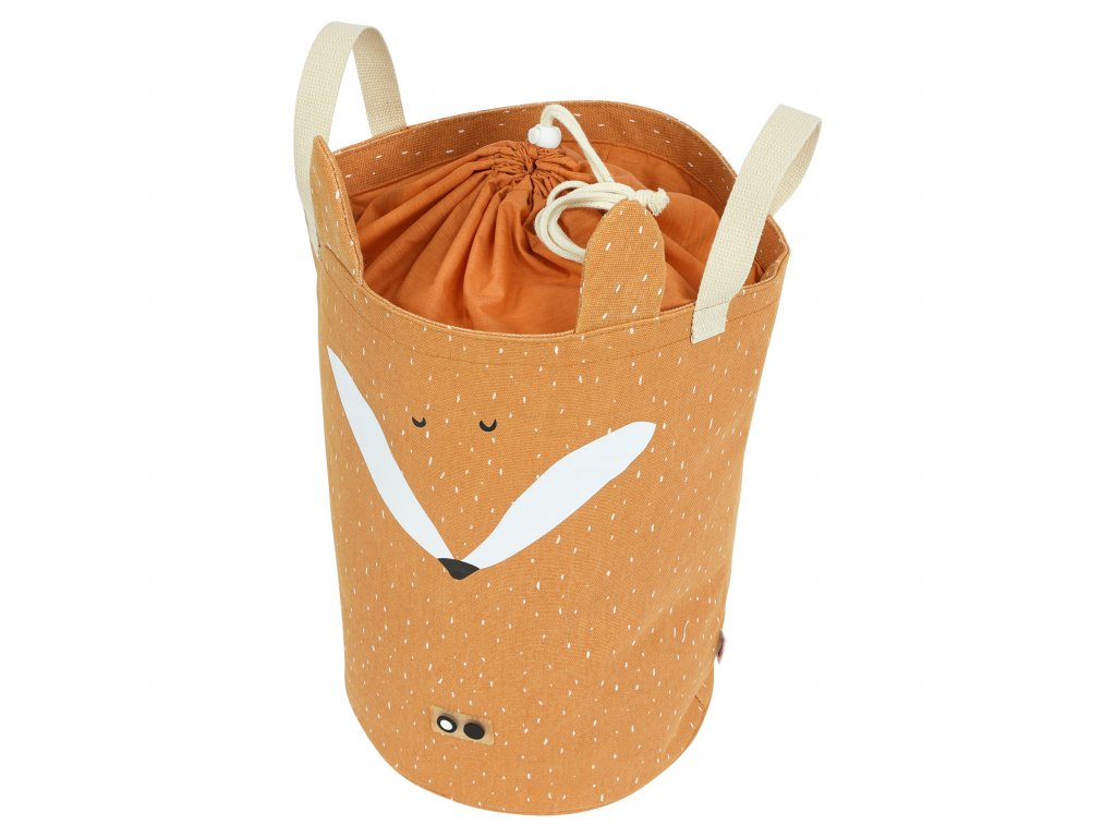 Úložný koš na hračky s motivem lišky. Koš je velice stabilní, stojí sám o sobě a kromě hraček lze použít i jako koš na prádlo. Nahoře se dá uzavřít stahovací šňůrkou, takže není vidět dovnitř a vše je pěkně uklizené. Koš má dvě robustní ucha, a děti tak mohou snadno koš přemístit i když je plný. Do takového koše půjde uklízení jedna radost.