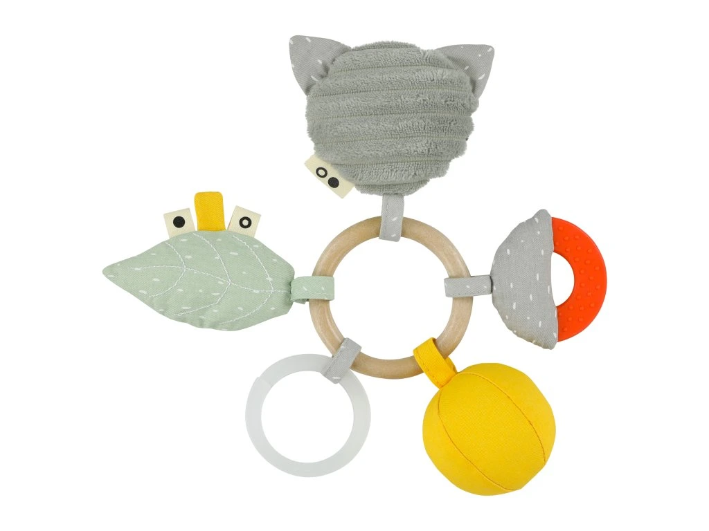 Než vaše dieťatko preskúma všetky tieto hravé prvky, bude sa baviť celé hodiny. Od obdivovania sa v malom zrkadle, chrastenia malého zvonca ukrytého v hlave zvieratka až po upokojenie seba samého pri zubovaní. Zábava zaručená!