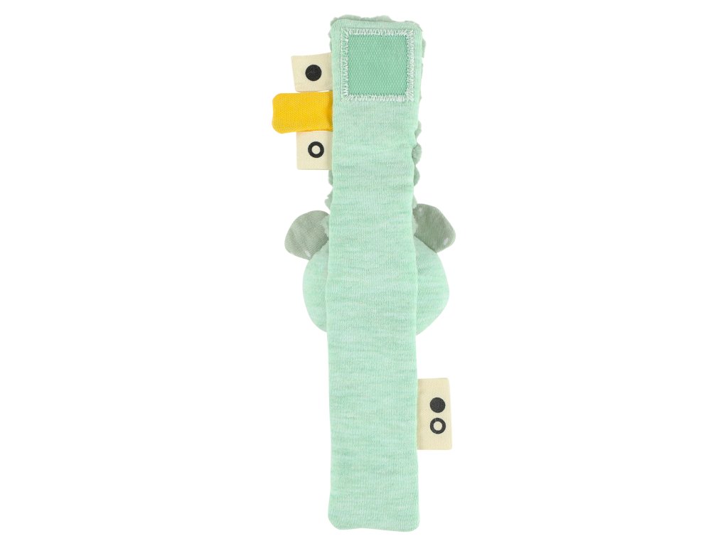 Toto krásné chrastítko na zápěstí určitě na nějakou dobu vaši ratolest zabaví, protože při každém pohybu se spouští mnoho zvuků. Má volný střih, takže netlačí na drobnou ručku a je vyroben z nejjemnějších materiálů.