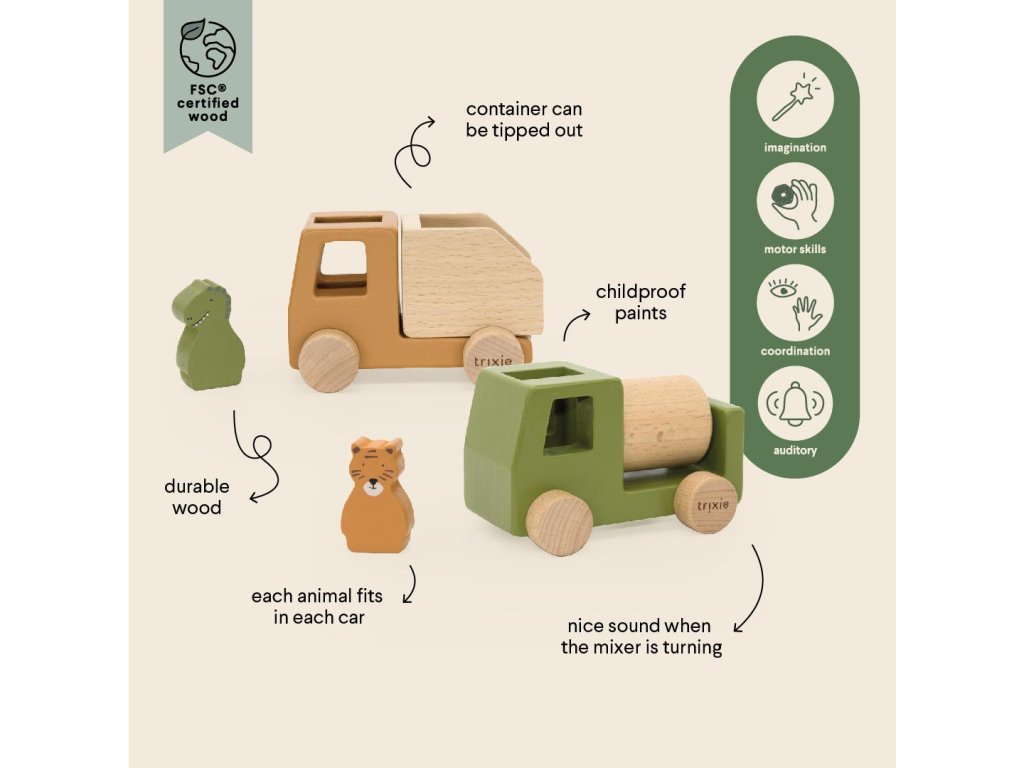 Každý malý stavitel potřebuje pořádné auta – a tyto dva krásné dřevěné náklaďáky jsou jako stvořené pro malé nadšence do stavebních prací.