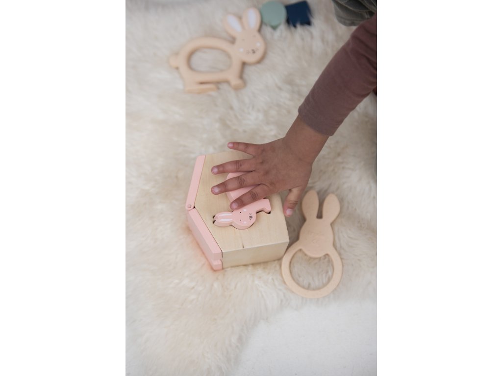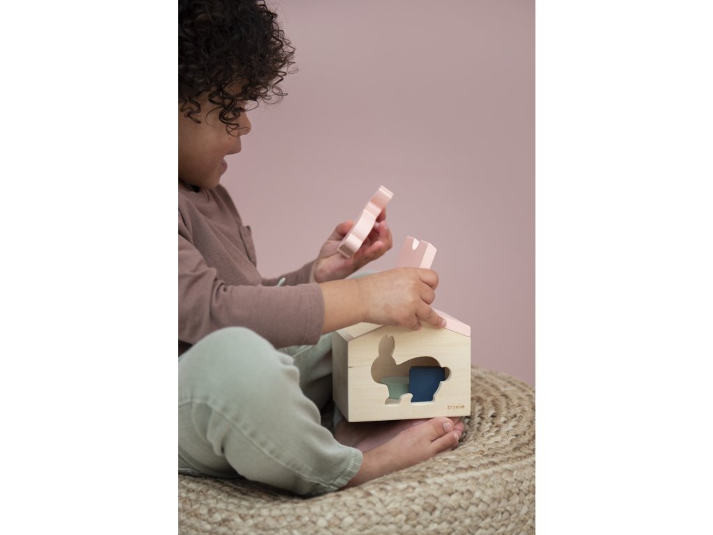 Pozdravte našeho králíčka a jeho malý domeček! Domeček má otevírací střechu a kromě zvířátka obsahuje i 3 geometrické kostky. S tímto roztomilým domečkem si vaše děti vydrží hrát dlouhé hodiny. Perfektní způsob, jak popustit uzdu dětské fantazii.
