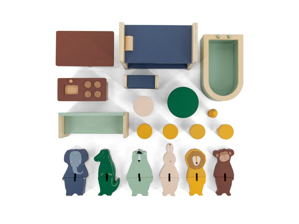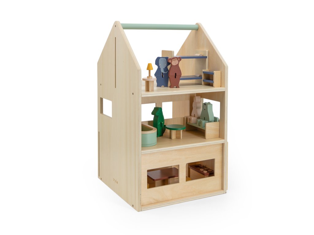 Dřevěný domeček s vybavením. 6 zvířecích kamarádů spolu bydlí v jednom domě! To bude zážitků!  Spoustu zábavy si děti užijí společně se všemi zvířecími kamarády v jejich krásném domečku. Každá chvíle strávená zde podpoří nekonečnou představivost a hravost vašich dětí.