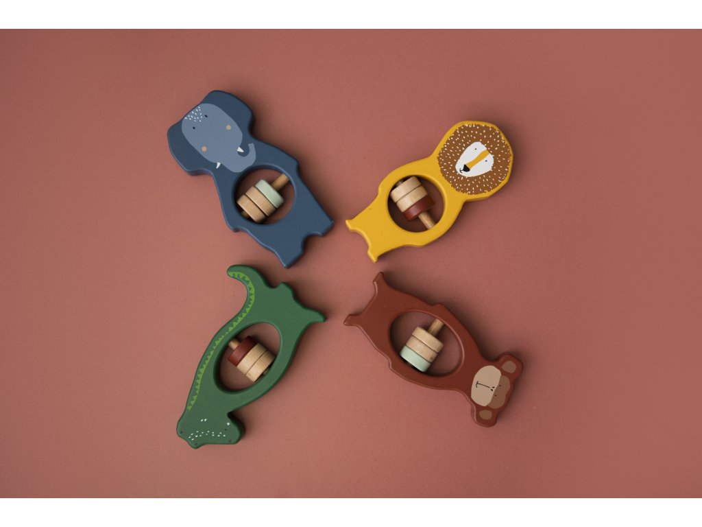 Krásné dřevěné chrastítko ve tvaru zvířecího kamaráda se dobře drží i těm nejmenším ručičkám.