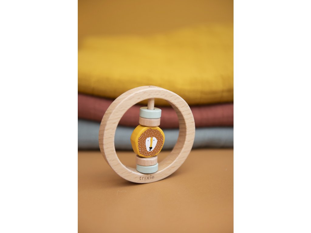 Krásné dřevěné chrastítko, které se dobře drží malinkatým ručičkám. Na tomto kulatém chrastítko je spoustu různých částí a tvarů k objevování.