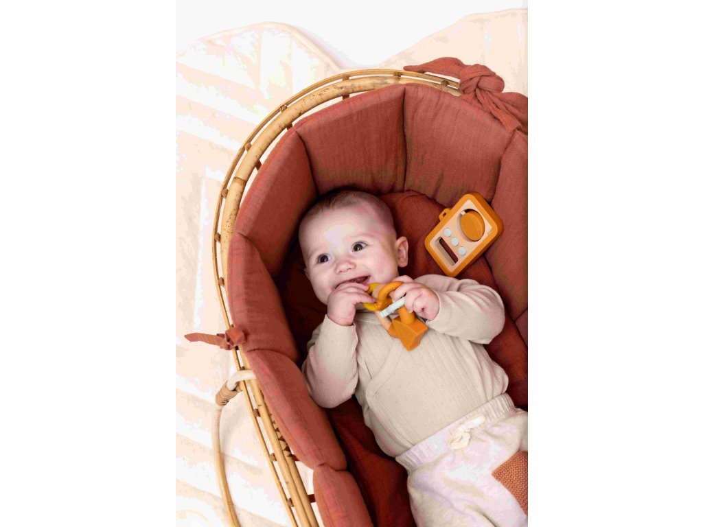 Tato hračka je navržena tak, aby děti mohly napodobovat dospělé a zároveň rozvíjet jemnou motoriku a koordinaci ruka-oko. Obsahuje dřevěný kroužek a tři měkké silikonové klíče, které jsou ideální pro žvýkání během prořezávání zoubků.