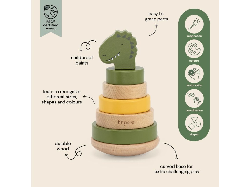 Dřevěná stohovací hračka Trixie - Mr. Dino