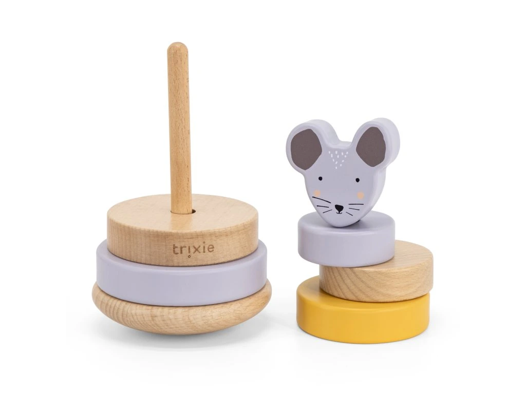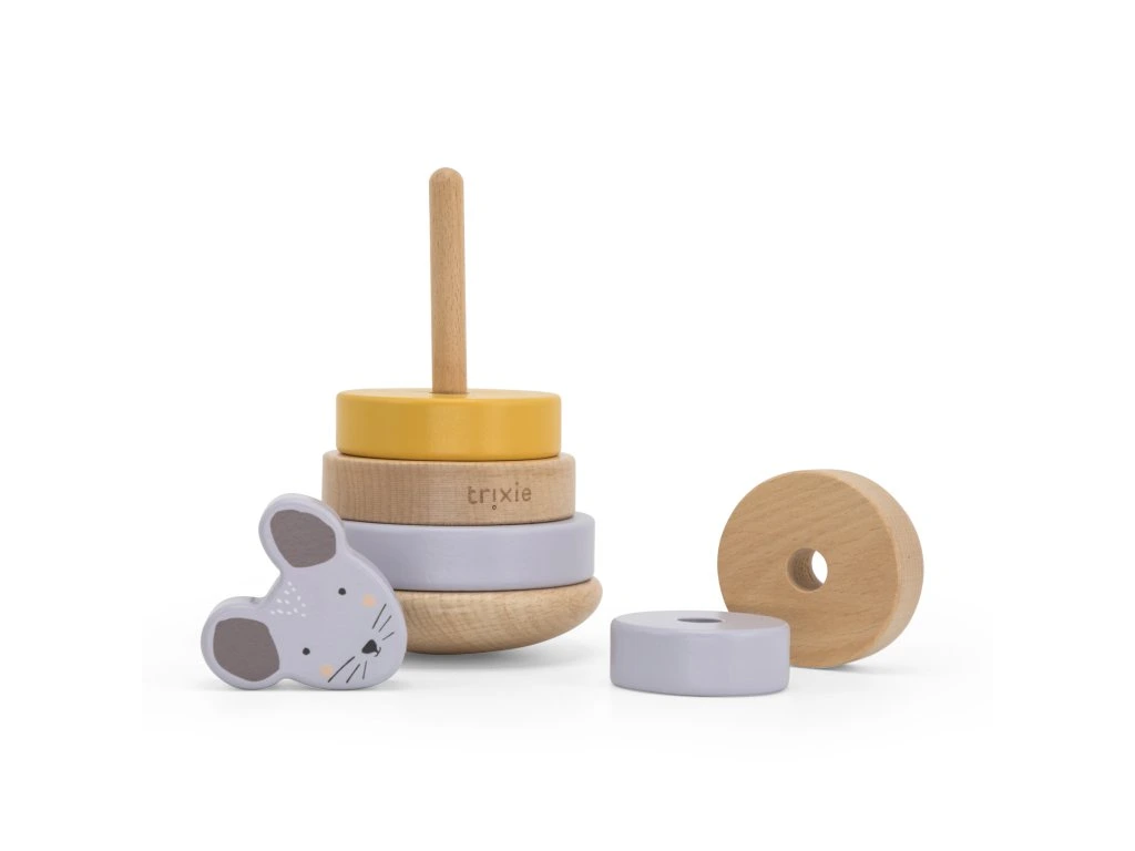 Nádherná drevená stohovacia hračka, ktorá bude zároveň ozdobou každej detskej izbičky. Drevená základňa je hojdacia, a robí tak deťom skladanie ešte o niečo náročnejšie.