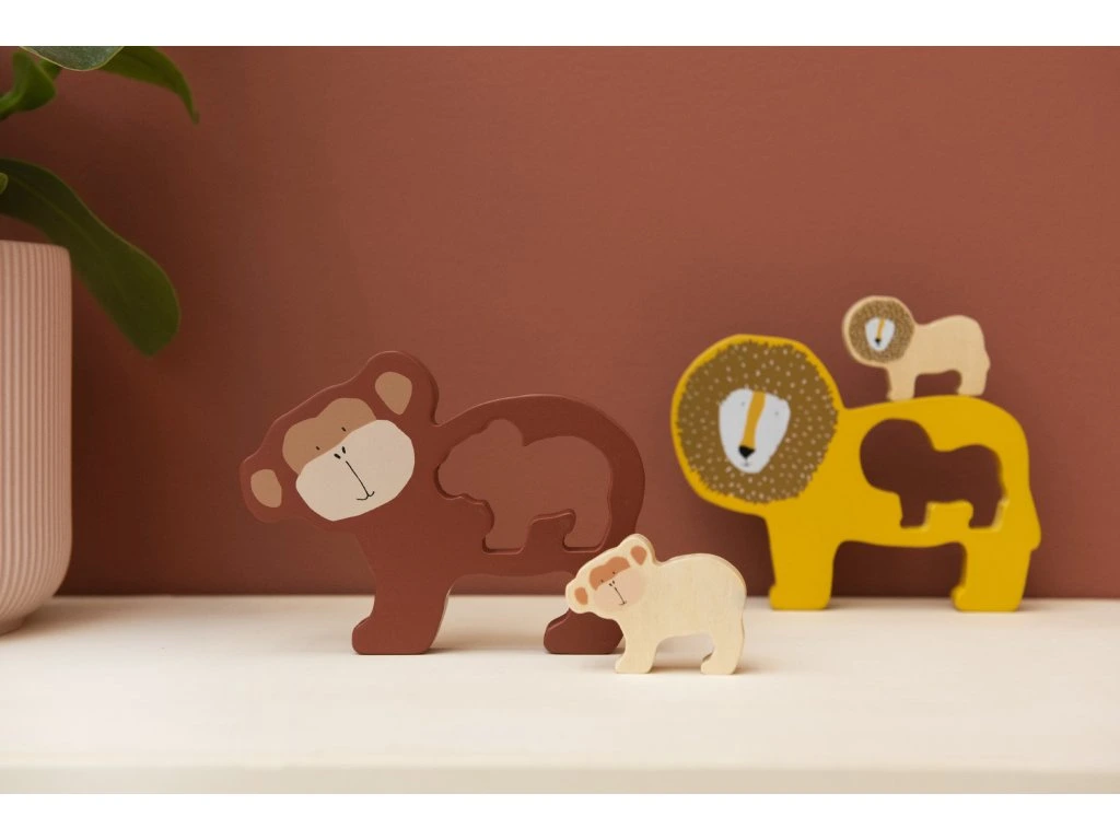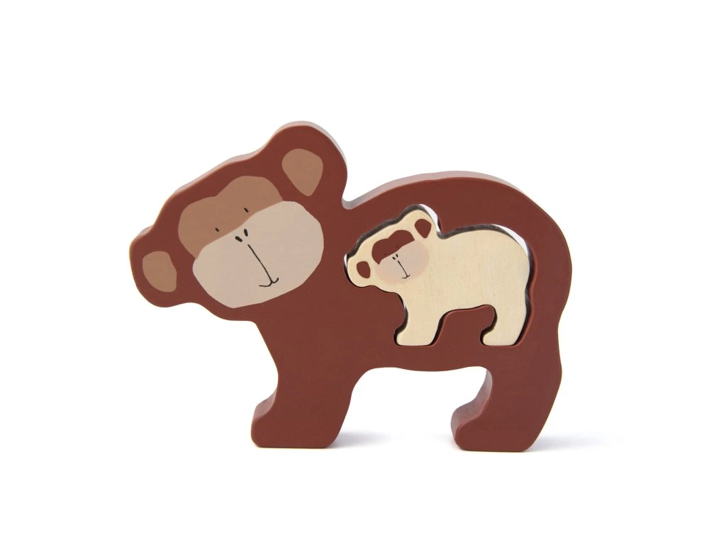 První dřevěné puzzle vašeho maličkého! Tato roztomilá skládačka se skládá ze dvou dílků, zvířátka a jeho maminky nebo táty.