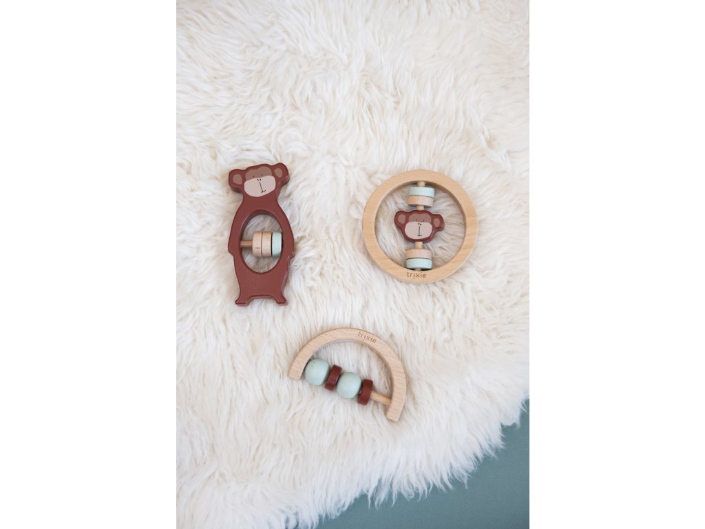 Krásné dřevěné chrastítko ve tvaru zvířecího kamaráda se dobře drží i těm nejmenším ručičkám.