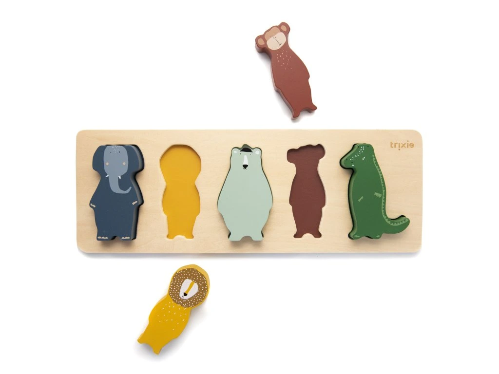 Poznejte naše zvířecí přátele tím, že je umístíte na správné místo, jednoho po druhém! Jednotlivé zvířátka jsou poměrně robustní, takže se s nimi bude snadno manipulovat i těm nejmenším. Zvířátka mohou každý stát samostatně a fungovat jako zábavné figurky na hraní. Když odeberete zvíře, objeví se barva. Hraní se zvířaty popustí uzdu dětské fantazii!