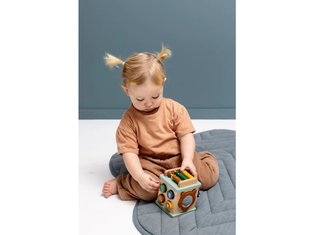 Objevte dřevěnou aktivní kostku Trixie, která nabízí 5 různých aktivit pro zábavu a rozvoj motorických dovedností vašeho dítěte. Díky zrcátku, tlačítkům s veselými zvuky, otočným ozubeným kolečkům a chrastícímu tlačítku s motivem lva děti nejen procvičují jemnou motoriku, ale i objevují nové smyslové zážitky. Pevná konstrukce zajišťuje dlouhou životnost a bezpečnost při hře. Perfektní volba pro děti od 12 měsíců, která podpoří jejich představivost a kreativitu.